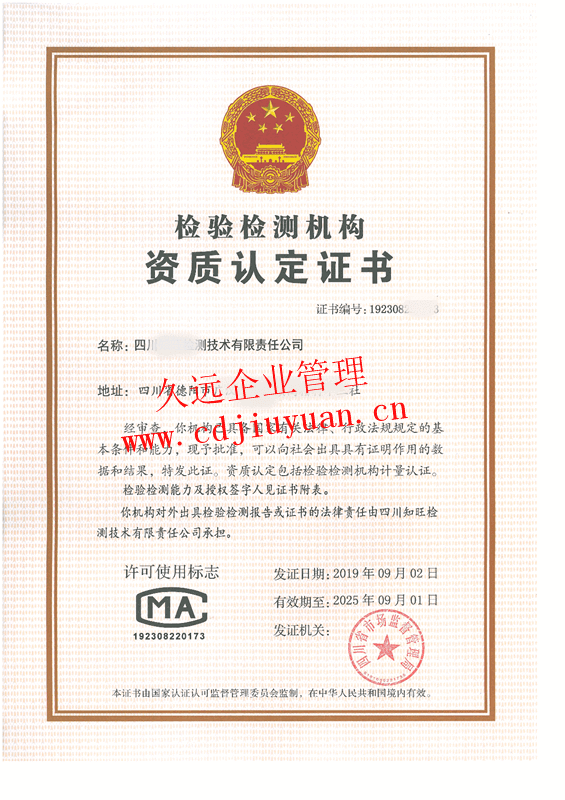 檢驗檢測機(jī)構(gòu)資質(zhì)認(rèn)定證書(CMA)